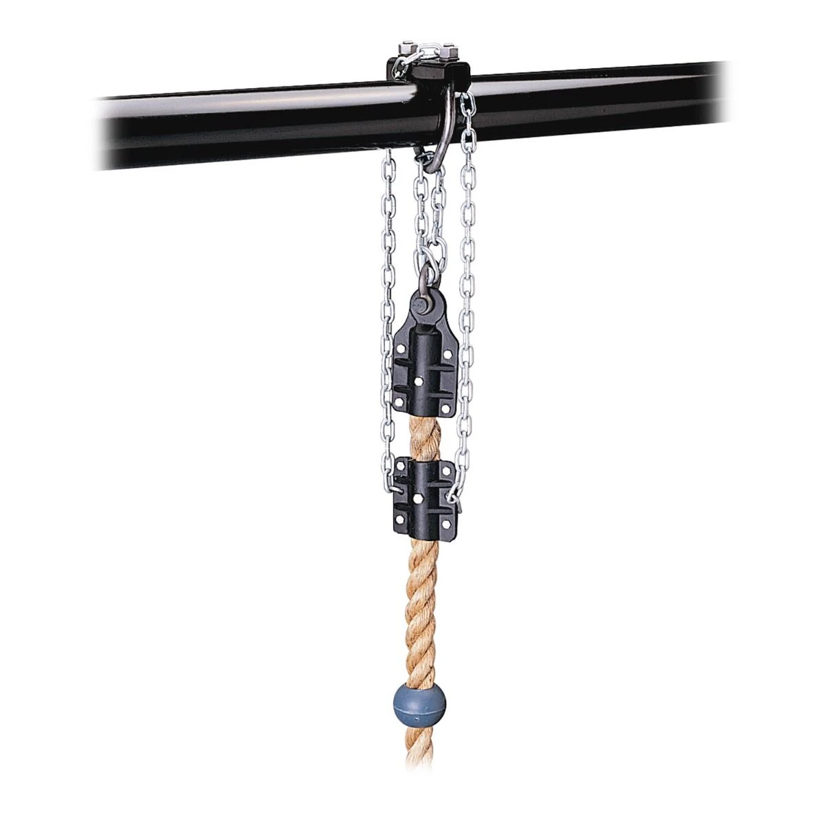 Rope Hoist-An important option for all gyms equipped with climbing ropes. This hoist is complete with wall brackets, ceiling attachment, heavy-duty cord and weight. Installs with ease and is ready to use. Tambourine-Constructed of 3/8” double lacquered plywood, this tambourine restricts climbing height and acts as an indicator for exercise completion. Special clamp permits fast removal and allows easy adjustment. Safety Guard-An important safety option for all climbing ropes. This safety guard prevents the rope from falling to the floor if a part fails or wears out. Clamp for 3-1/2” OD Pipe-Heavy, precision die-cut, formed clamp with a special 5/8” diameter formed eye fitting provides an easy method for securing climbing ropes to 31/2” outside diameter support pipe beams. Steel “I” Beam Clamp-A convenient way to mount climbing ropes to the bottom flange of standard roof framing trusses. A 3/4” diameter threaded clamp assembly and ductile iron eye casting clamp provides a simple, heavy-duty attachment system. Staple Plate-Dual, heavy-formed 7 gauge steel mounting brackets provide a safe and convenient method to secure climbing ropes to the side of wood laminate, or concrete roof framing structures. Dimensions are 4 1/2” x 2 1/2” x 1/4”. WARNING: Products may contain chemicals known to the state of California to cause cancer, birth defects, or other reproductive harm. www.P65Warnings.ca.gov |