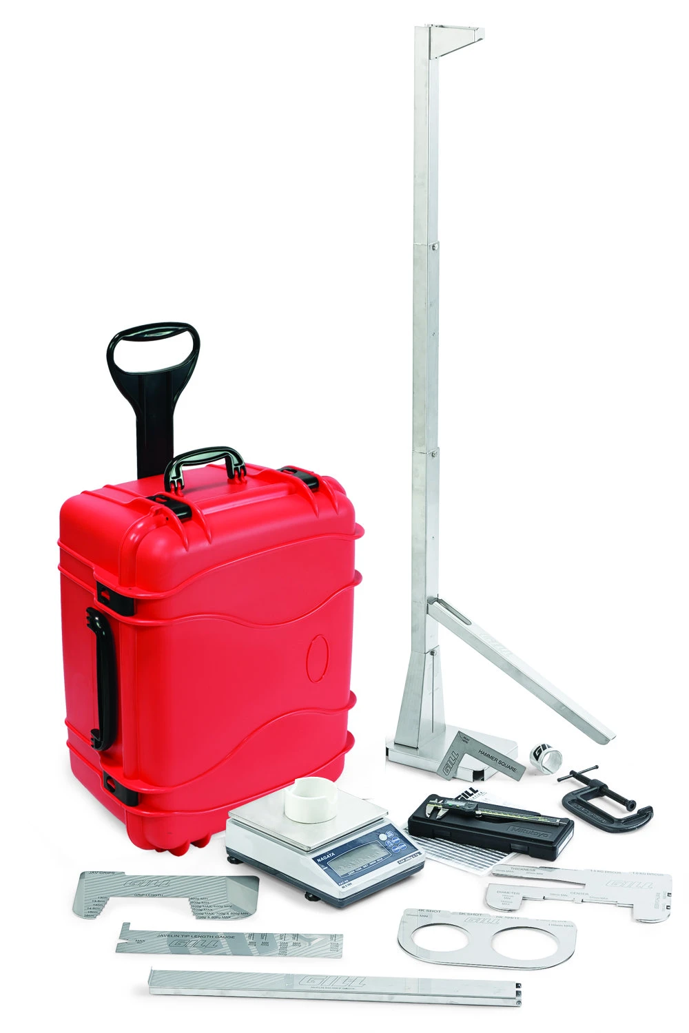 With the redesigned official-friendly Gill Implement Certification Kit, officials can be assured that each implement meets specifications. Labeled tabs help you quickly find the right sized gauge. A larger base on the hammer gauge means increased stability. This self-contained unit includes a scale and depending on model, checks the specifications for the discus, javelin, shot put, and hammer. The gauges and labels are laser cut stainless steel for extreme accuracy and permanency. NEW wheeled case for easy transportation. 93051 High School Kit 93066 High School Javelin Kit 93075 NCAA Kit 93080 World Athletics Kit CA Prop 65 Warning WARNING: Products may contain chemicals known to the state of California to cause cancer, birth defects, or other reproductive harm. www.P65Warnings.ca.gov |