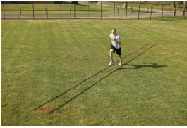 Designed to incrementally increase stride length and frequency, the two key elements to sprint speed. New design features all red rungs, black sides, and a carry bag. Increasing stride spacing from 12” to 69”. 37’6” x 20” WARNING: Products may contain chemicals known to the state of California to cause cancer, birth defects, or other reproductive harm. www.P65Warnings.ca.gov |